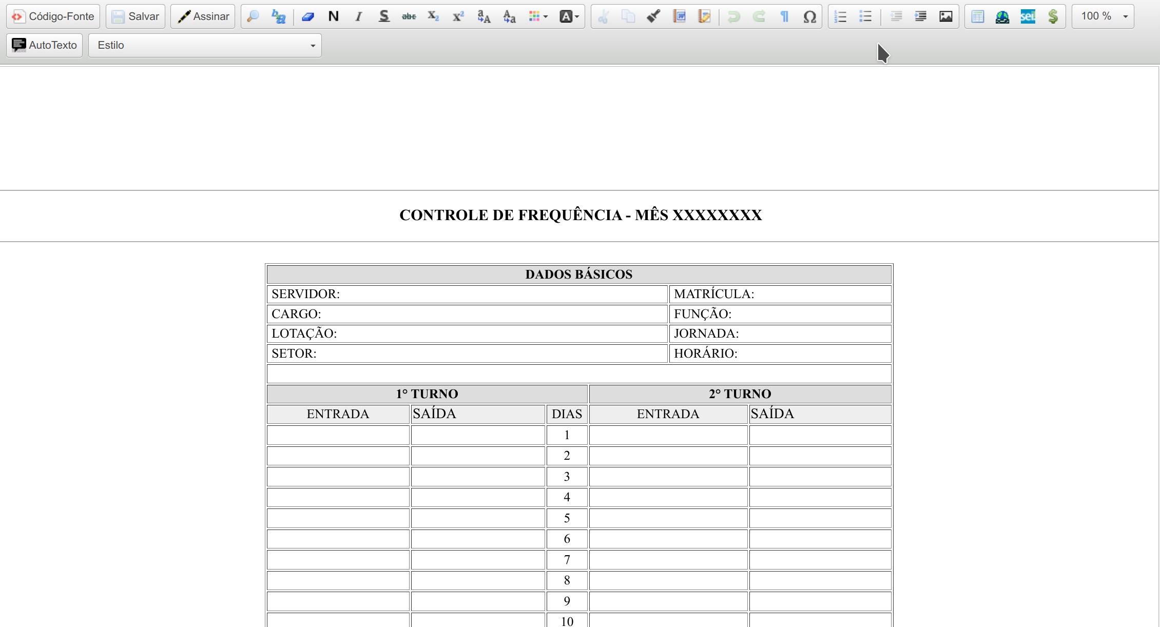 10. Dentro do sistema da instituição, crie uma nova frequência vazia e clique em qualquer local da tabela de frequência.